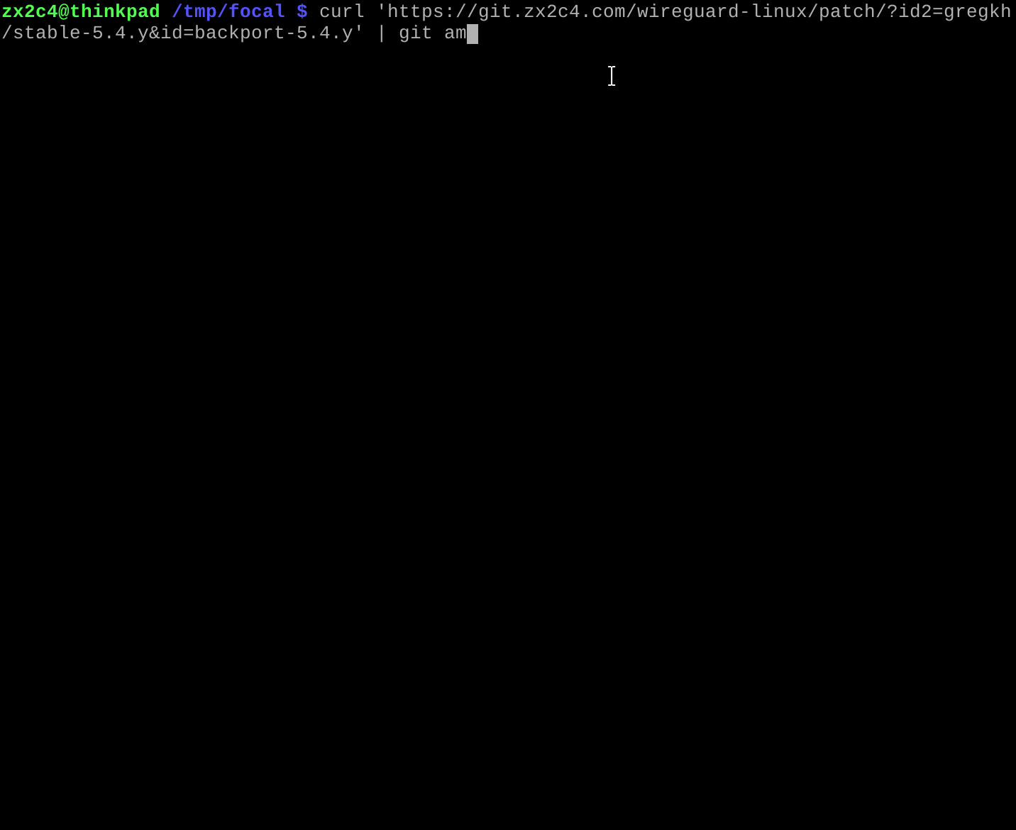$ curl 'https://git.zx2c4.com/wireguard-linux/patch/?id2=gregkh/stable-5.4.y&id=backport-5.4.y' | git am -s