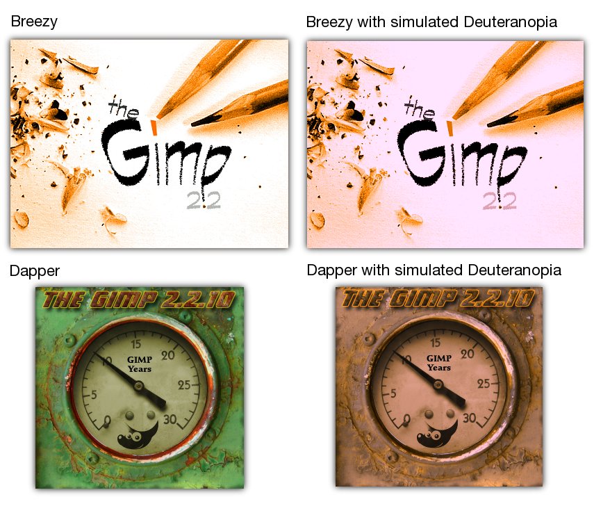 > - The GIMP title text is barely legible due to the font, shadow and bordering