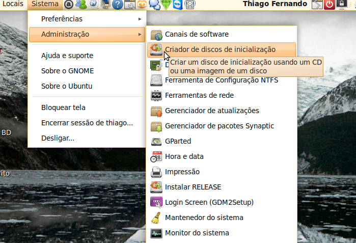 > > > > > > > > Espete o pen e no menu do Gnome, Sistemas, Administração,